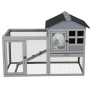 2-Tier Wood Rabbit Hutch, Indoor Outdoor Small Animal House with Removable Tray, Ramp, Openable Roof, Bunny Cage for Ducks, Squirrels, Grey with Colorful Patterns